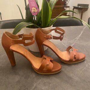 Vintage Hermès H-Strap Leather Heeled Sandals Size 39 – Authentic