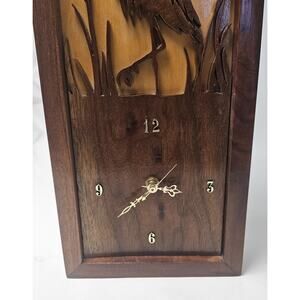 Vintage Heron Silhouette Wooden Wall Clock Battery Operated 14" x 7.25"
