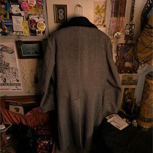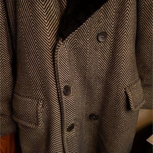 Vintage Herringbone Striped Overcoat Men's 38 Small/Medium Brown Wool Fur Lined