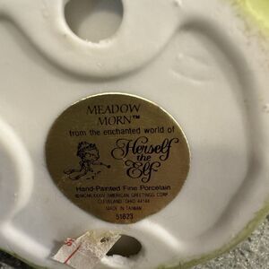 Charming vintage Herself the Elf figurine featuring Meadow Morn, part of the American Greetings Designers Collection. Hand-painted porcelain with original hang tag.