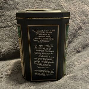 🍫 Item Description: This collectible metal tin depicts an "Ice Cream Social" scene in Hershey, Pennsylvania, around 1920. It is part of the Hershey's Hometown Series and was manufactured in 1994.