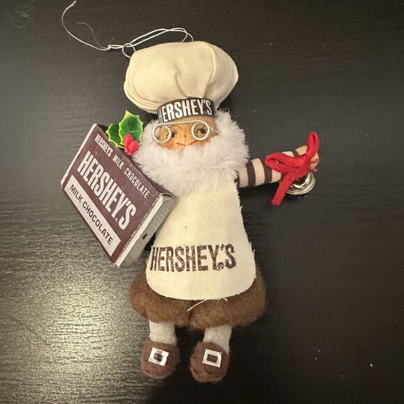 Vintage Hersheys Milk Chocolate Chef Christmas Ornament Fabric Wood