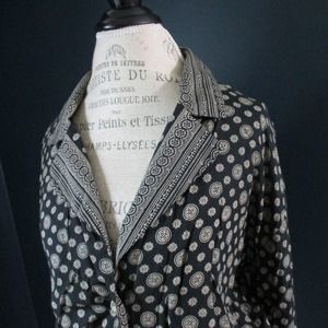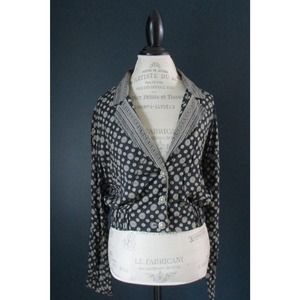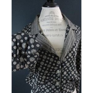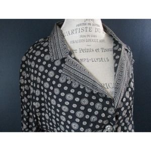 Vintage Herve Leger Black Printed Button Cropped Long Sleeve Blouse Size Large