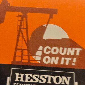 Vintage Hesston Sentry Pumping Units Promotional Pinback Button Orange Pin