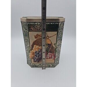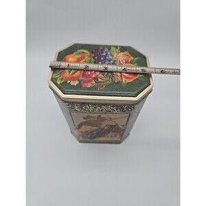 This vintage hexagon-shaped tin is perfect for storing your favorite cookies or candies. Featuring a charming fruit design, this tin will add a touch of whimsy to your kitchen decor. The sturdy construction ensures that your treats will be safe and sound for days to come. This tin is in exceptional condition. Measurements are inside the photos. Item is sold as is. Please ask all questions before purchase.