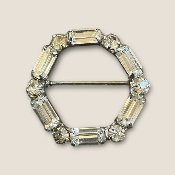 Vintage Hexagonal Rhinestone Brooch Silver-Tone 1 Inch Diameter