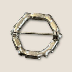 This brooch features a hexagonal design with sparkling rhinestones set in silver-tone metal. A timeless piece for accessorizing and adding subtle elegance.