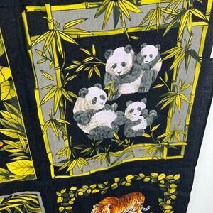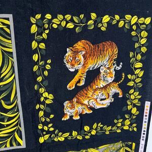 Vintage Hi Fashion Fabrics Wild Animal Fabric Remnant Tiger Panda Black Quilting