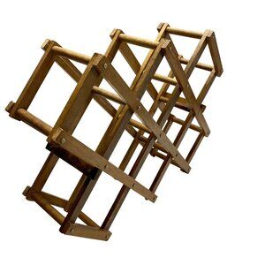This vintage Hi-Mark wooden wine rack is a charming piece, reminiscent of a bygone era where craftsmanship and functionality were valued. Its expandable design allows it to adapt to your collection, accommodating bottles as they are added or enjoyed. Its warm wooden finish adds a rustic touch, evoking cozy evenings spent with friends and family around a table.