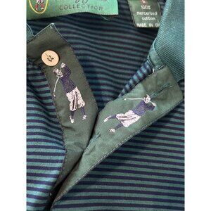 This elegant Hickey Freeman Bobby Jones Collection polo shirt, crafted in Italy, features green stripes, 100% mercerized Egyptian cotton, and unique golf-themed accents. Excellent tailoring and stylish versatility.