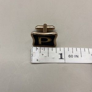Vintage Hickok Monogram "P" Single Cufflink Rose Gold Tone / Black 1950s