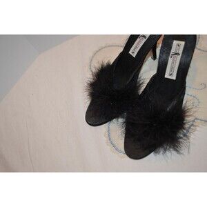 Vintage High Heel Slippers with Marabou Zsa Zsa Loves Black