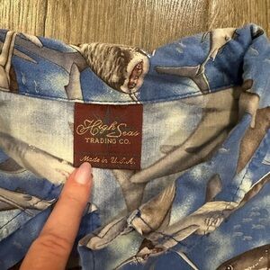 Vintage High Seas Youth Boys XL Camp Shirt Button Down Shark Ocean Vacation