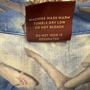 This vintage High Seas shirt for youth boys features a unique shark theme, making it a rare and fun addition to any collection. The button-down design adds a classic touch, while the short sleeves make it perfect for warm weather. The shirt is made of comfortable cotton material, and is a size XL with a chest size of 19.5 inches and a shoulder to hem measurement of 24 inches.