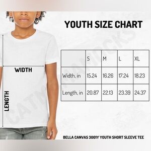The size tag is missing, but I have taken measurements and shown a picture of a youth size chart for reference. This shirt is an excellent, preowned condition! Made in USA.
