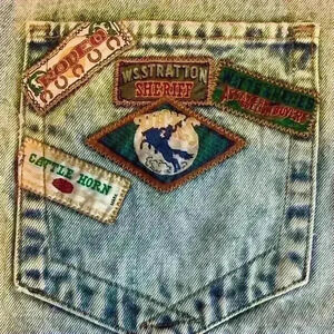 These vintage Gitano high waisted jeans are in great condition. One of a kind, discontinued. They have several Rodeo themed patches on one of the back pockets. Waist measures 38 inches