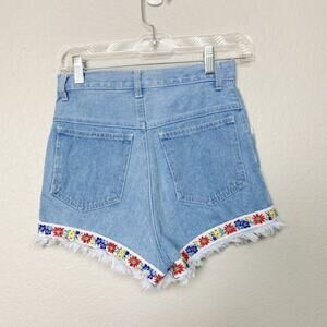 Vintage High Waisted Mom Jean Shorts Flower Trim
