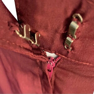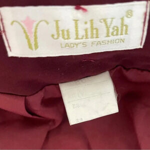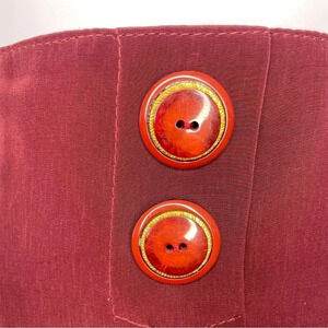 Vintage Maroon Red High Waisted Pleated Midi Skirt, Silky Lining, Button Decoration, Elastic Waist. Made by Ju Lih Yah Woman’s fashion. Size Medium.