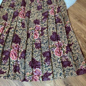 Vintage High Waisted Rose Floral Pleated Midi Skirt, Sz Small