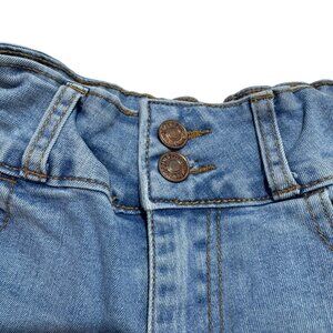 Vintage High-Waisted Denim Shorts With Rolled Hem & Double Button Closure