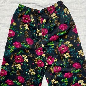 Bold floral pattern- very Phoebe Céline colors. Pants have a relaxed wide-leg silhouette and a comfortable elastic waistband with back zip. So cool and can be dressed up or down. No pockets, material feels like polyester.