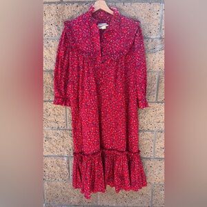 Vintage Hilda Hawaii Red Floral Ruffle MuuMuu Prairie House Dress 1970’s 1980’s