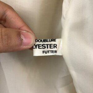 This vintage sweater jacket features a classic chevron stripe design, offering warmth and style. The zip-up closure ensures ease of wear, while the ribbed cuffs and hem provide a snug fit. Ideal for cooler weather, its neutral tones allow for versatile styling options.