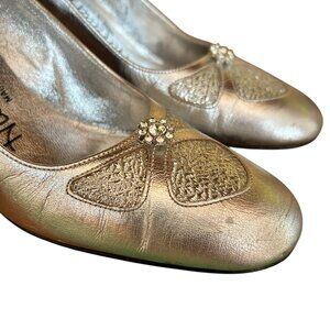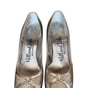 Vintage Hill and Dale Metallic Silver Pinup Jeweled Pumps 5.5 N USA