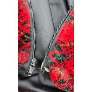 Cozy up in this 80s/90s gem with luxe faux fur plaid in deep autumn tones and a statement faux fur hood trim. Made in the USA by Hillmoor New York. Slightly cropped and cozy—this one’s giving vintage après-ski vibes. Just needs a little TLC at the zip!