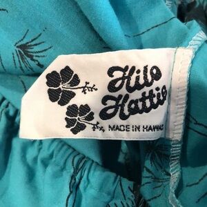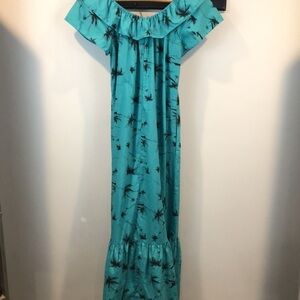Vintage Hilo Hattie Hawaiian Off Shoulder Teal MuMu Maxi Dress Size Large