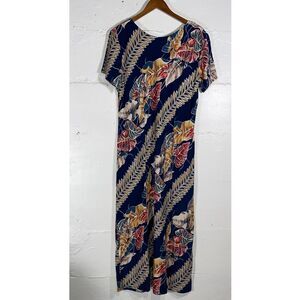 Vintage Hilo Hattie Hawaiian Original Maxi Dress Navy Tropical Floral XL 80s 90s