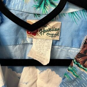 Vintage Hilo Hattie Hawaiian Shirt Mens Size MedIslands Sailboats Palms Rainbows