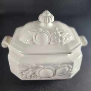 Vintage Himark Kitchen Gourmet White Embossed Fruit Motif Gravy Soup Tureen