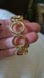 GOLD toned & CRYSTAL ACCENTED OPEN WORK ROUND LINK HINGED CLAMPLER STYLE BANGLE BRACELET NO MISSING STONES 2 1/4" INSIDE DIAMETER