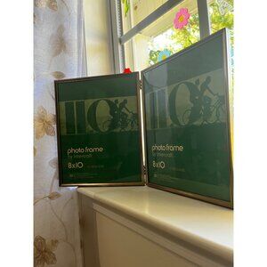 Vintage Hinged Double Picture Frame - Tabletop - Gold Tone Metal w/ Glass - Holds Two 8x10
