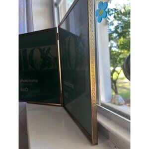 Vintage Hinged Double Picture Frame - Tabletop - Gold Tone Metal w/ Glass - Hold