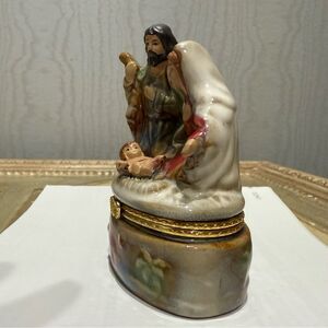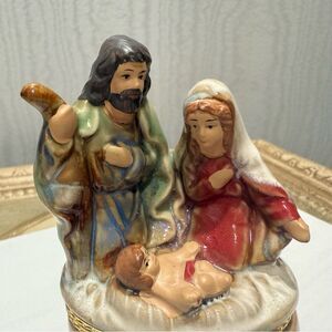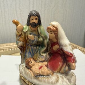 Vintage Hinged Nativity Trinket Box Mary Joseph Baby Jesus Christmas