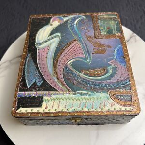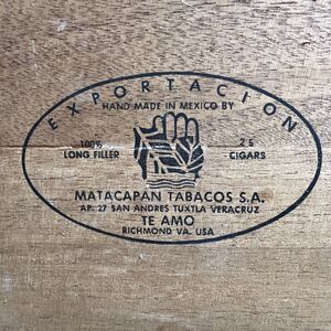 Very Beautiful Handmade Painted Vintage Hinged Wood 2.5 Cigar Box TE-AMO Richmond VA USA Tobacco TORO Natural