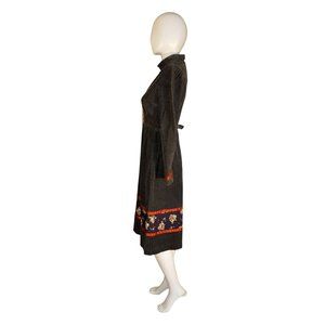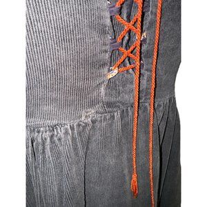 Vintage Hippie Dress by Trivia Corduroy Dress Midi Deep V 1970s