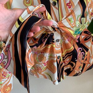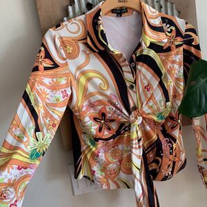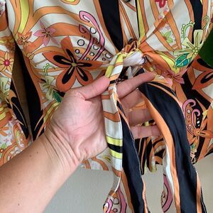 Vintage Hippie Shirt Plunging Self-Tie Soft Stretchy long sleeve top Xl