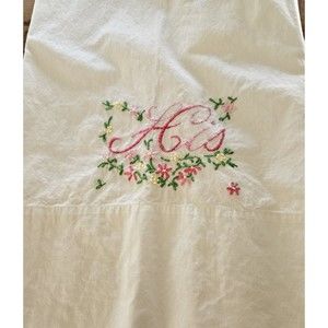 This vintage pillow cover is a beautiful addition to any bed set. The intricate floral pattern and embroidered "His" lettering give it a unique and stylish touch. Made from 100% cotton, this standard size pillow cover is both soft and durable.