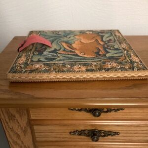 Very good condition. 9 1/2” square tapestry wall hanging.