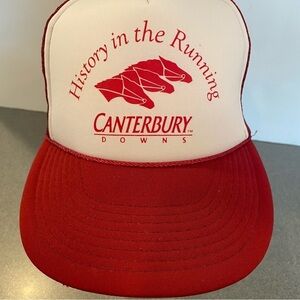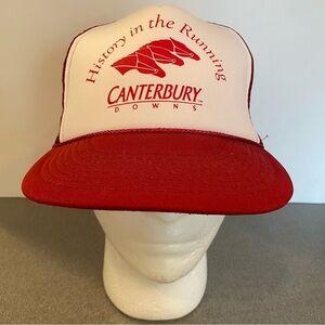 Vintage History In the Running Canterbury Downs Mesh Trucker Hat in like new condition. One size fits all/adjustable. Color is red and white. There is no signs of wear. Mesh back.