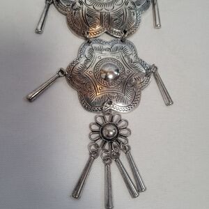 Vintage Hmong Miao Silver Metal Ceremonial Etched Elephant Collar Necklace. Please see all photos for condition. Approximately 14" long. Great statement piece.