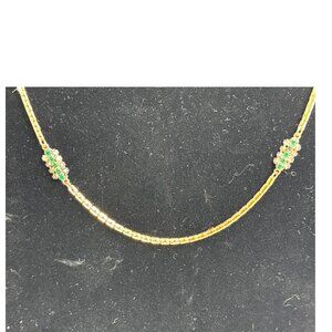 This vintage Hobé necklace exudes elegance with its delicate gold-tone box link chain adorned with green rhinestone accents. Ideal for those who appreciate timeless jewelry, this piece can elevate both casual and formal outfits, adding a touch of sophistication to any ensemble.