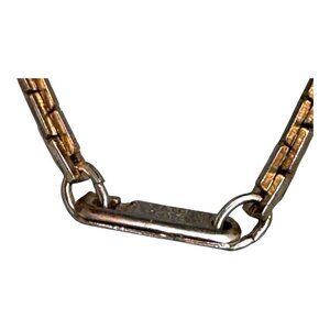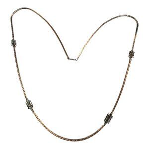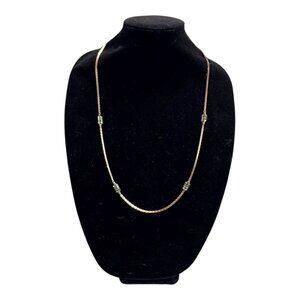 Vintage Hobé Gold Tone Box Link Necklace Emerald Green Rhinestone Accent 28"