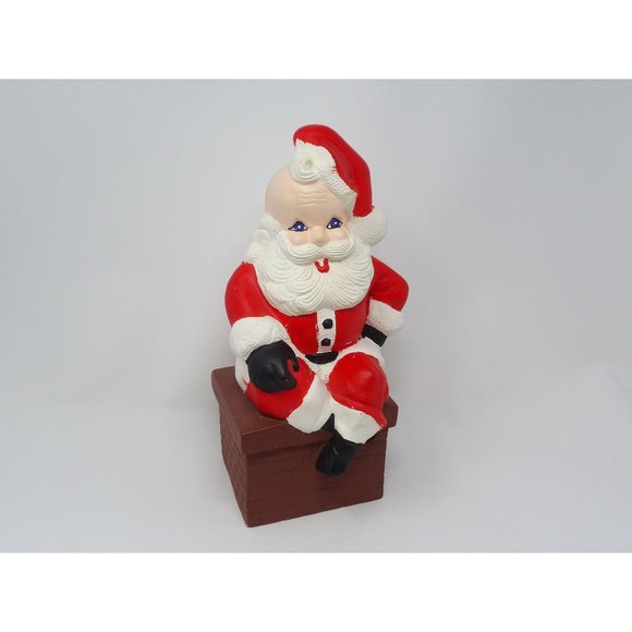 Vintage Hobbyist Ceramic Santa on Chimney 12" H x 5 1/2" W x 4 3/4" D