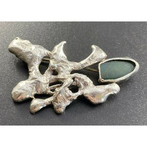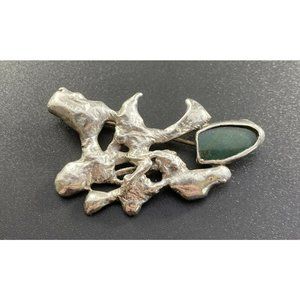 Vintage Hobe Cast Sterling Silver Brooch Green Stone Fine Rare Intricate Pin.