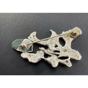 Vintage Hobe Cast Sterling Silver Brooch Green Stone Fine Rare Intricate Pin