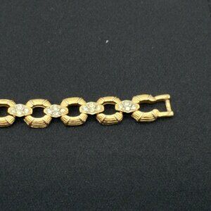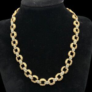 Vintage Hobe Gold-Tone Link Rhinestone Necklace 16" Signed Designer Estate Jewel